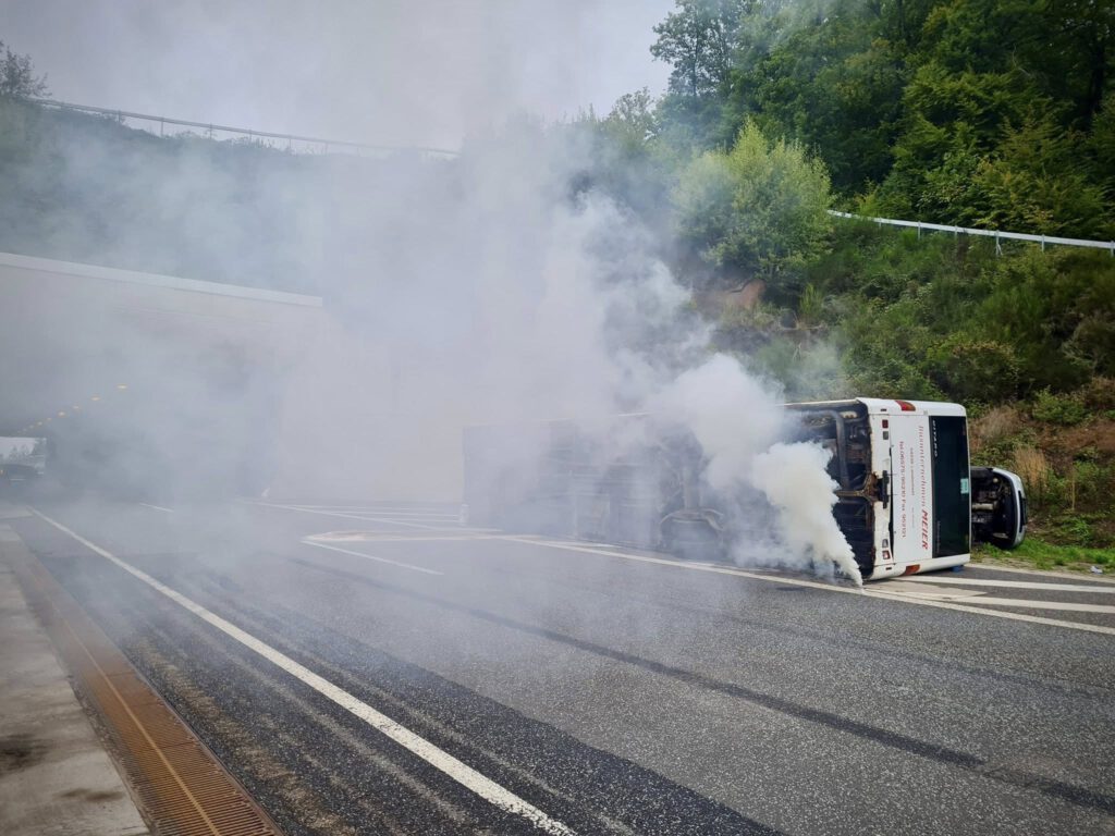 Vor Ort bot sich den eintreffenden Einsatzkräften ein erschreckendes Bild. Neben der Fahrbahn lag ein Reisebus auf der Seite, zwei weitere Fahrzeuge waren schwer beschädigt in den Unfall verwickelt. Innerhalb des Busses sowie in den beteiligten Pkws befanden sich zahlreiche Personen, die verletzt oder eingeklemmt waren. Teilweise waren die Insassen nur schwer zugänglich, sodass eine aufwendige technische Rettung erforderlich wurde.